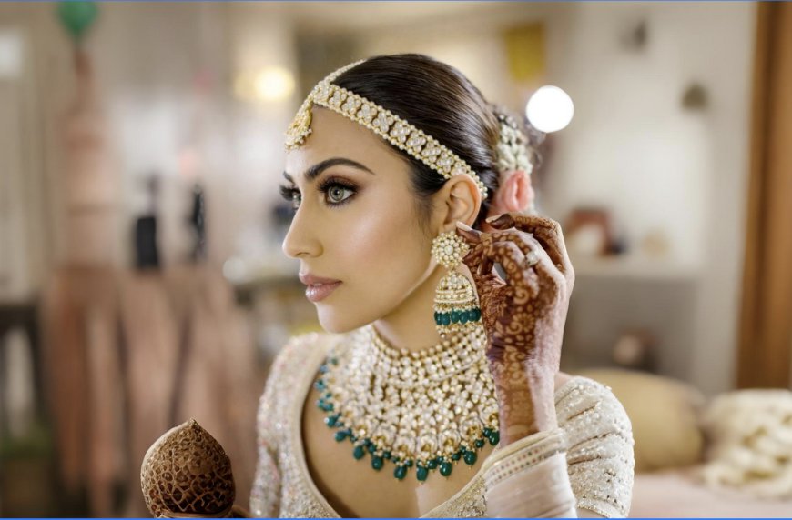 Bridal jewellery is powerful—your makeup should complement it, not fight it.